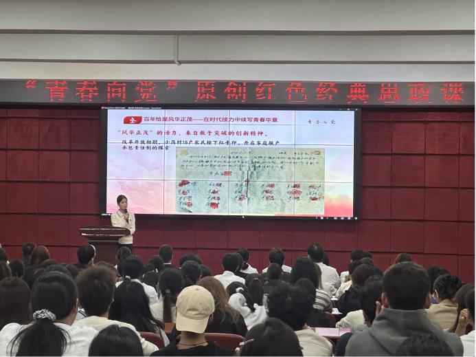 不同于传统思政课堂,此次课堂将讲台完全交给学生。6名学生从聆听者转变为思考者、讲述者与传播者,自主策划设计,通过诗诵、问答、故事分享、视频展播等形式,把青春感悟融入思政教育。同龄人讲述党的故事,以更强共情力推动思政教育从“入耳”走向“入心”,让学生主体地位得到充分彰显。课堂内容紧扣学生成长需求,构建清晰的精神导航体系。从“红船精神”中汲取志气,从陈延年、陈乔年就义事迹中感悟理想坚定,从“老科学家的入党志愿书”里领会科技报国初心,再以身边“仲景学子范浩源”为现实标杆,更以“你为什么入党?”的灵魂叩问为枢纽,引导学子在历史与时代坐标中明晰自我定位,为成长注入精神动力。
