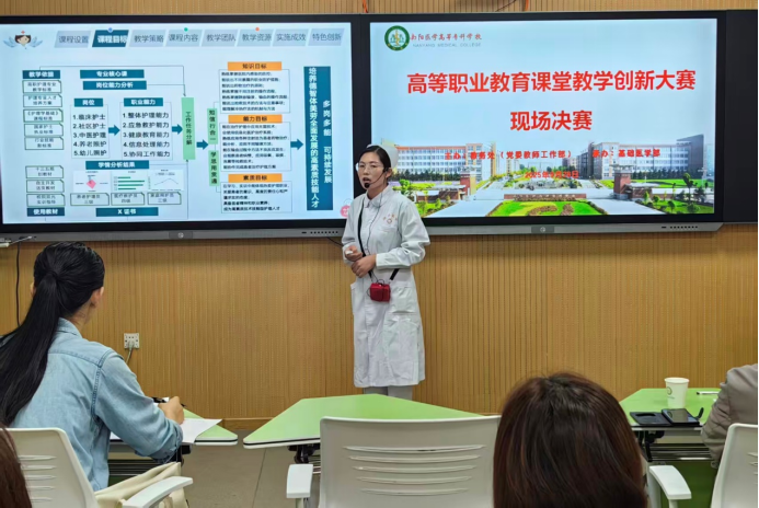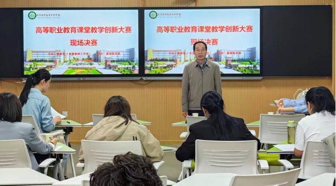 参赛教师围绕课程教学“痛点”,系统阐释教学目标、内容、方法、活动与评价的改革思路,以10分钟无生课堂形式呈现创新成果。赛后,教务处处长李明哲总结点评。他充分肯定参赛选手在教学理念、技术应用与评价方式上的突破,指出部分作品创新性不足、课程设计与职教特色融合不深、课堂表现形式仍显单一等问题,给出具体改进建议。