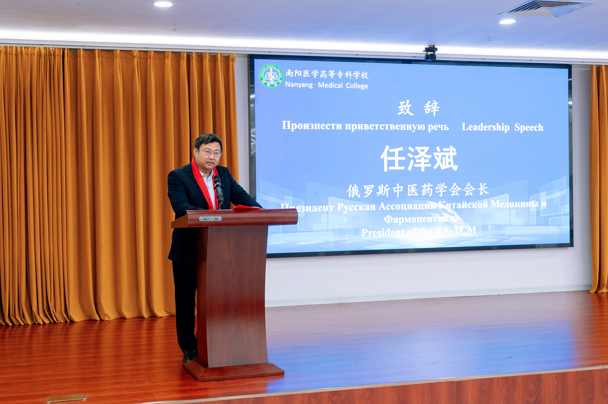 任泽斌感谢学校的悉心组织,回顾了中俄中医培训合作历程,表示愿进一步深化合作。学员代表萨米尔称,非常珍惜这次“回家”学习的机会,希望将中医技术带回莫斯科,惠及更多俄罗斯民众。班主任程晓雪和教师代表王旭承诺将全力为学员做好服务保障和教学指导。