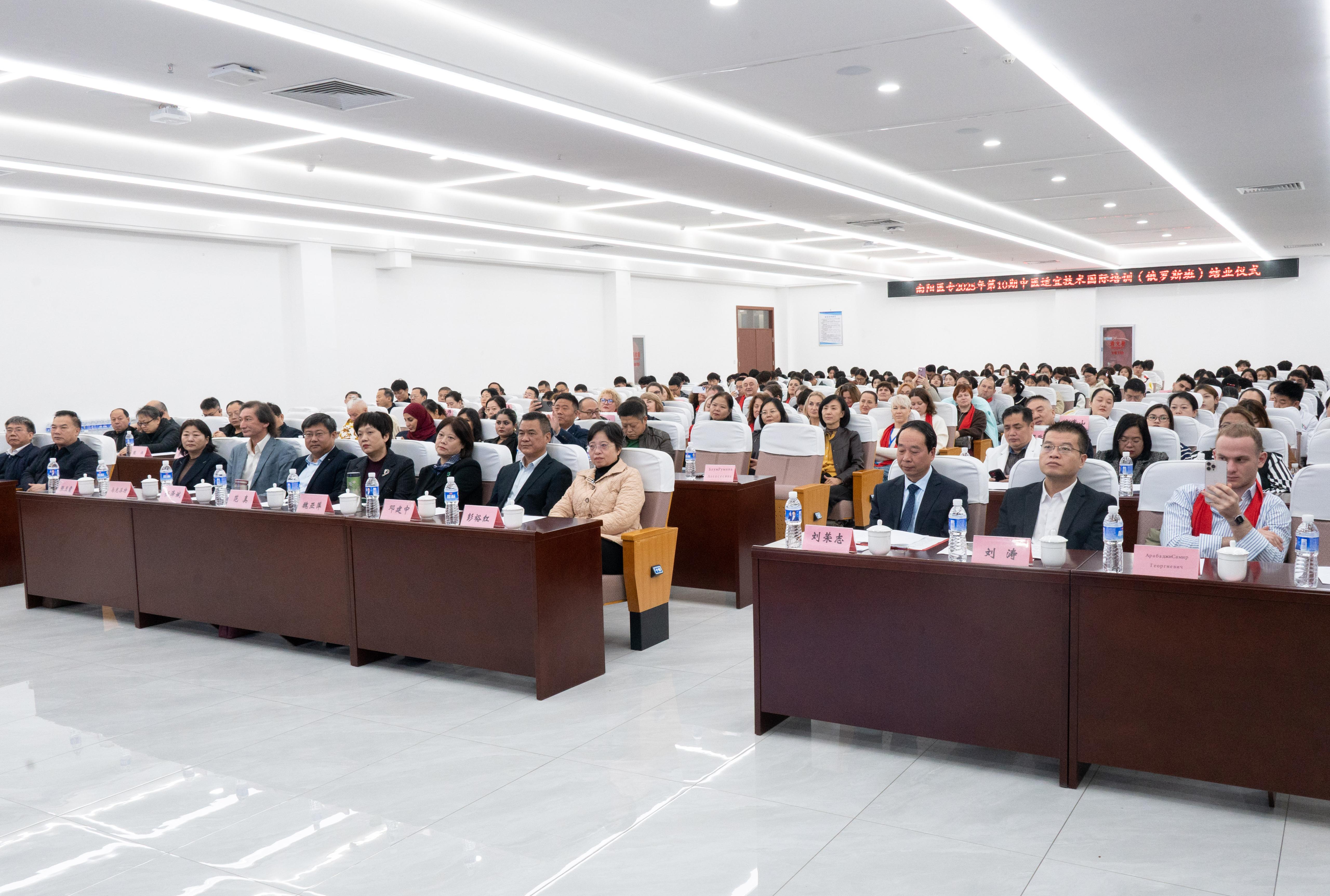 本网讯(文/对外合作交流处 夏灵果)11月7日上午,我校举行2025年第10期“仲景工坊”中医适宜技术国际培训(俄罗斯班)结业仪式。俄罗斯中医药学会会长任泽斌、副会长马克苏特,我校校长范真、党委副书记刘涛出席,来校参加中国职业技术教育大会中医技术技能研讨会的代表,我校外籍教师、来华留学生和师生代表共200余人参加。仪式由副校长刘荣志主持。