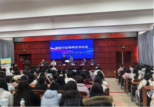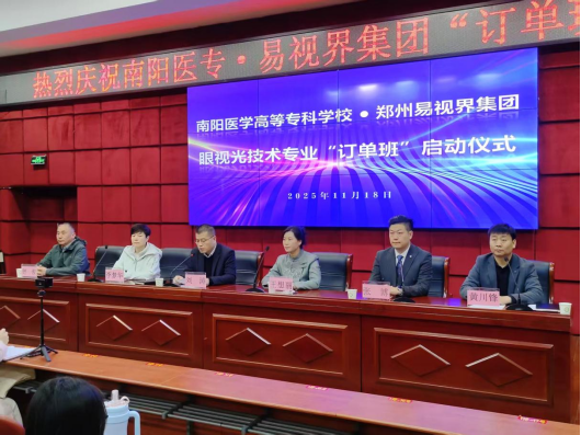 本网讯(文/医学技术 耿若君)11月18日上午,我校与郑州易视界集团合作共建的眼视光技术专业“订单班”启动仪式在仲景西区图书馆五楼报告厅举行。校党委副书记刘涛、易视界集团商学院院长王想丽出席,学校相关部门负责同志和眼视光技术专业师生参加。仪式由医学技术系主任黄川锋主持。