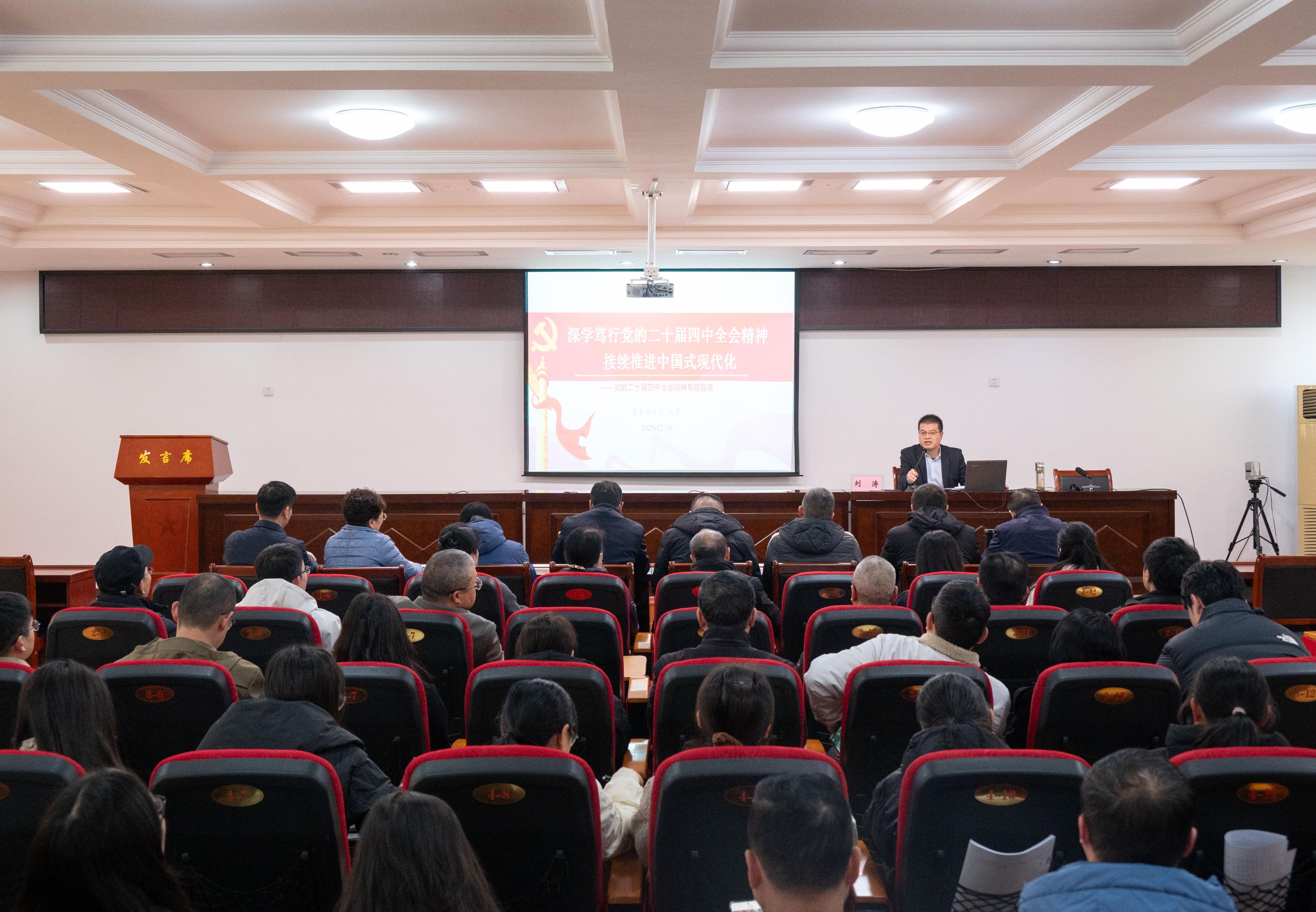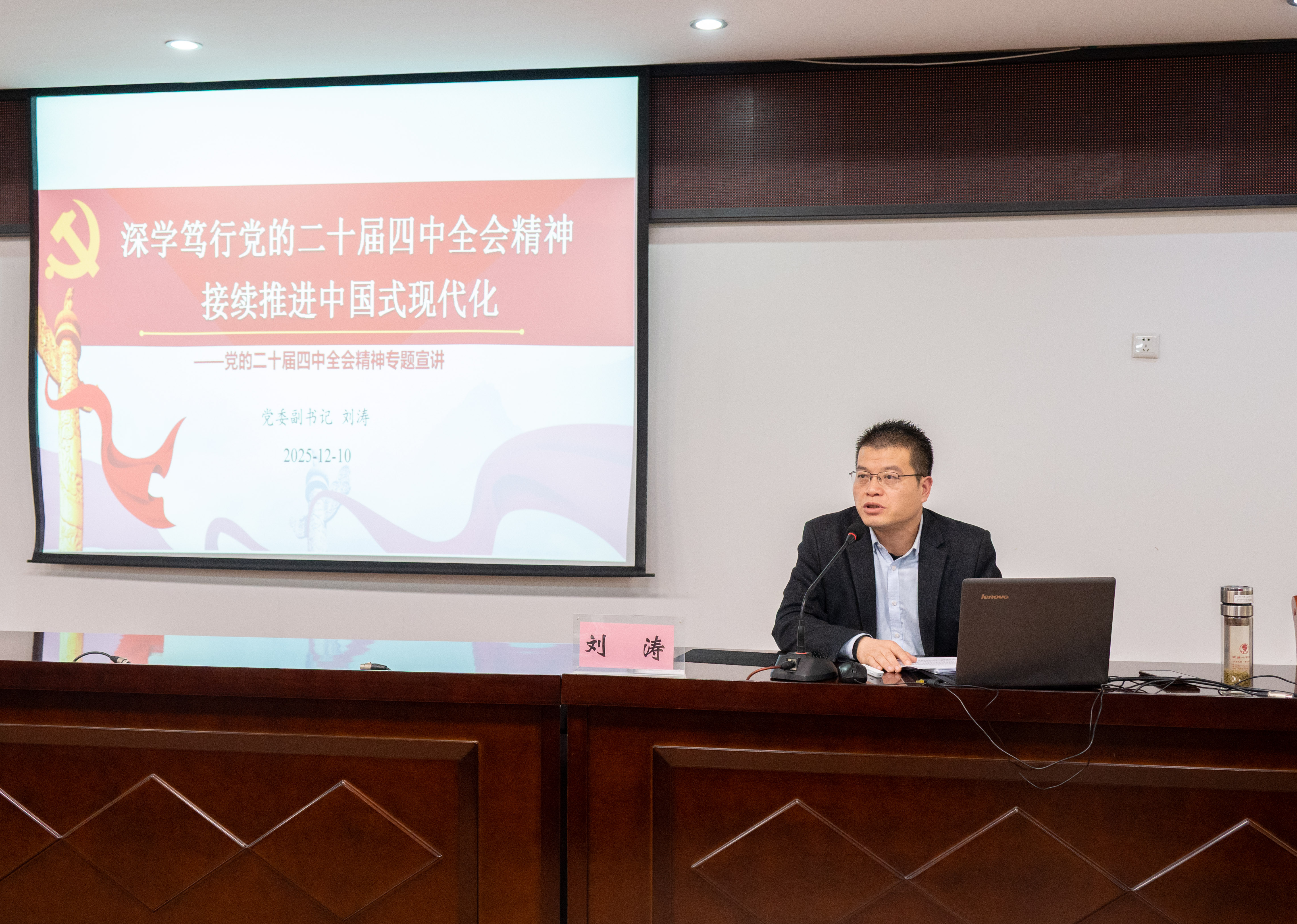刘涛以《深学笃行党的二十届四中全会精神,接续推进中国式现代化》为主题,首先对党的二十届四中全会召开的基本情况进行了介绍,指出本次会议在我国全面建设社会主义现代化国家关键时期召开的一次十分重要的会议,学习好贯彻好全会精神,是当前和今后一个时期全党全国的一项重大政治任务,是我校一项中心工作。然后,他分别从“十四五”时期取得伟大成就、党的二十届四中全会的时代价值、“十五五”时期我国发展面临的形势、中国式现代化的“十五五”行动纲领以及如何贯彻落实党的二十届四中全会精神等五个方面,结合翔实的数据和生动案例进行细致解读和深度阐释。