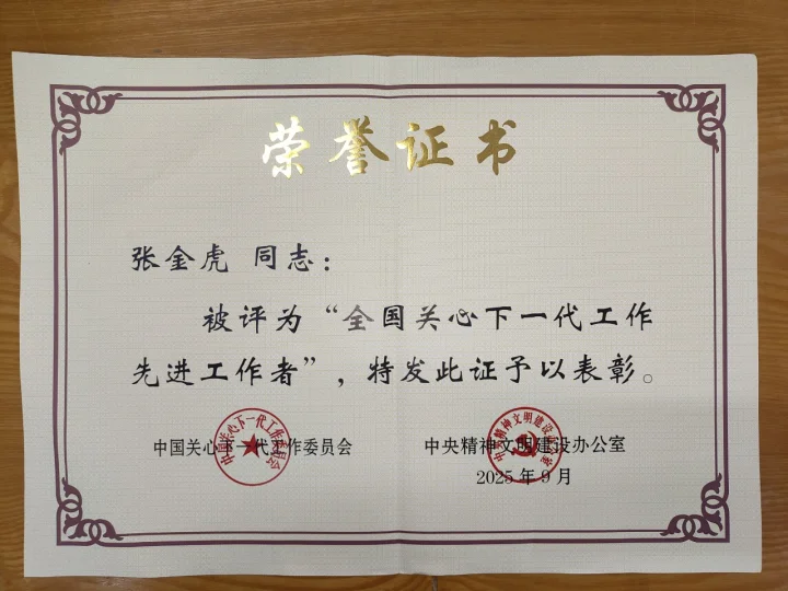 此次表彰不仅是对张金虎同志个人工作的高度认可,更是对我校关心下一代工作整体成效的充分肯定。我校将深入宣传张金虎同志的先进事迹,进一步激发全校“五老”队伍的责任感与使命感,让银龄之光持续照亮青年成长成才之路,为培养担当民族复兴大任的时代新人贡献更大力量。(编审 华俊皓)