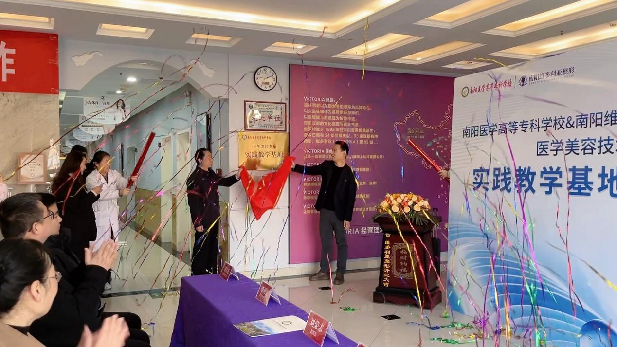本网讯(文/中医系 别玉龙)12月29日上午,学校医学美容专业实践教学基地挂牌仪式在维多利亚医疗美容有限公司举行。副校长刘荣志、维多利亚医疗美容有限公司总经理高建出席。学校相关部门负责同志及中医系2025级医学美容专业20名学生代表参加。