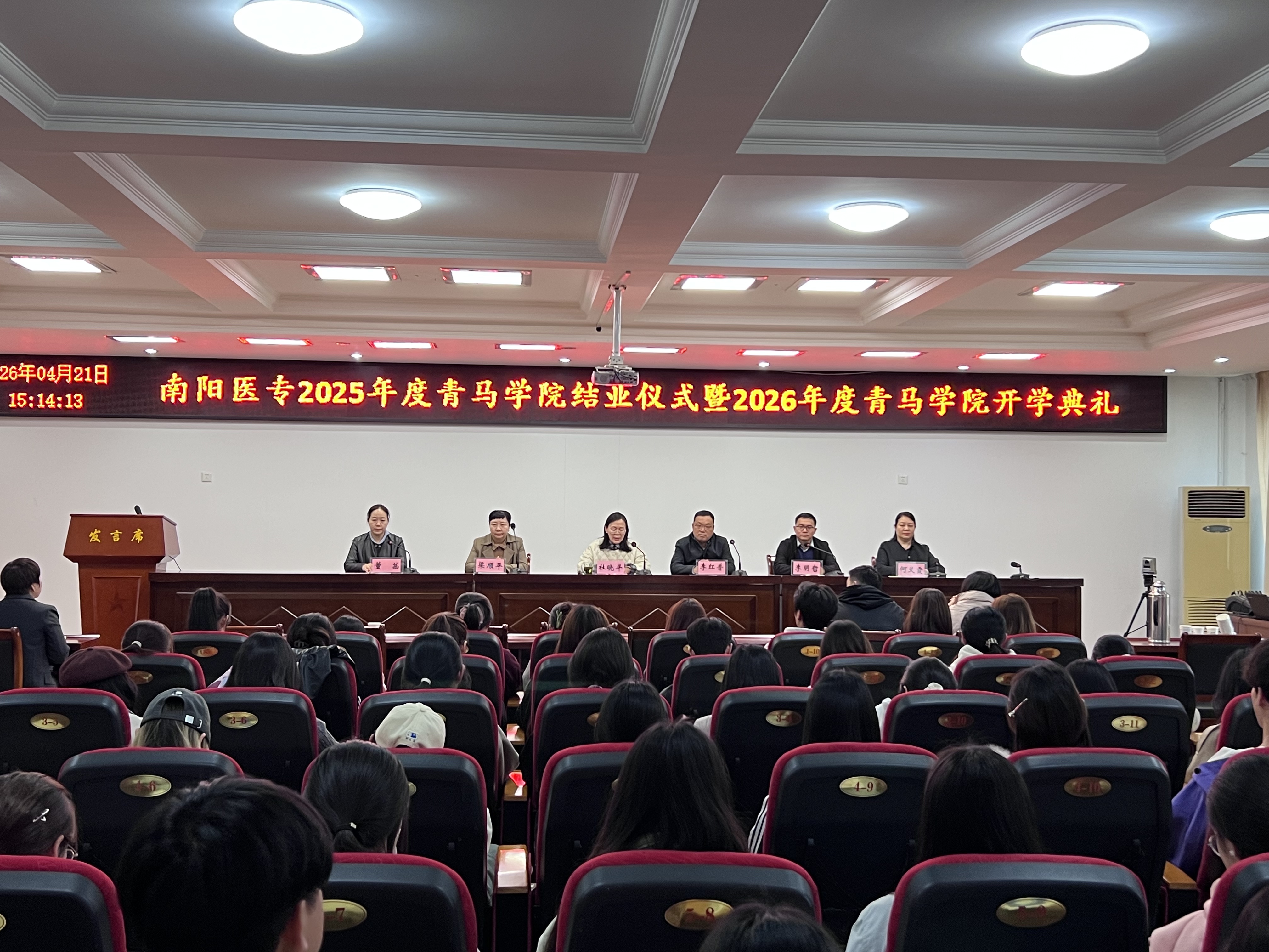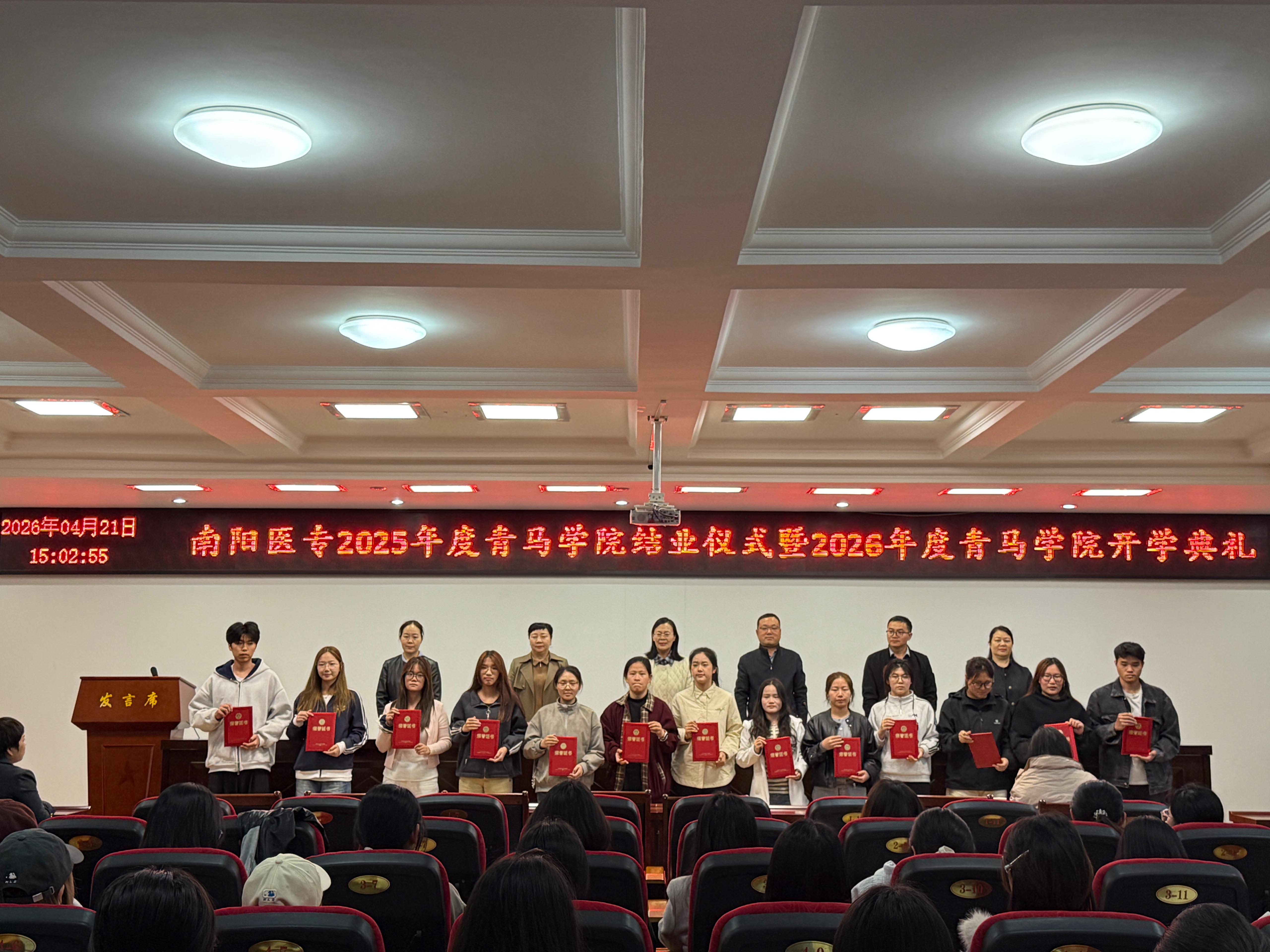 本网讯(文/团委 韩江源)4月21日,南阳医专2025年度青马学院结业仪式暨2026年度青马学院开学典礼在行政楼5楼会议室举行。校党委委员、副校长杜晓平出席,学校相关部门负责同志、各系(院)团总支书记和青马学院全体学员参加。团委书记董菡主持。