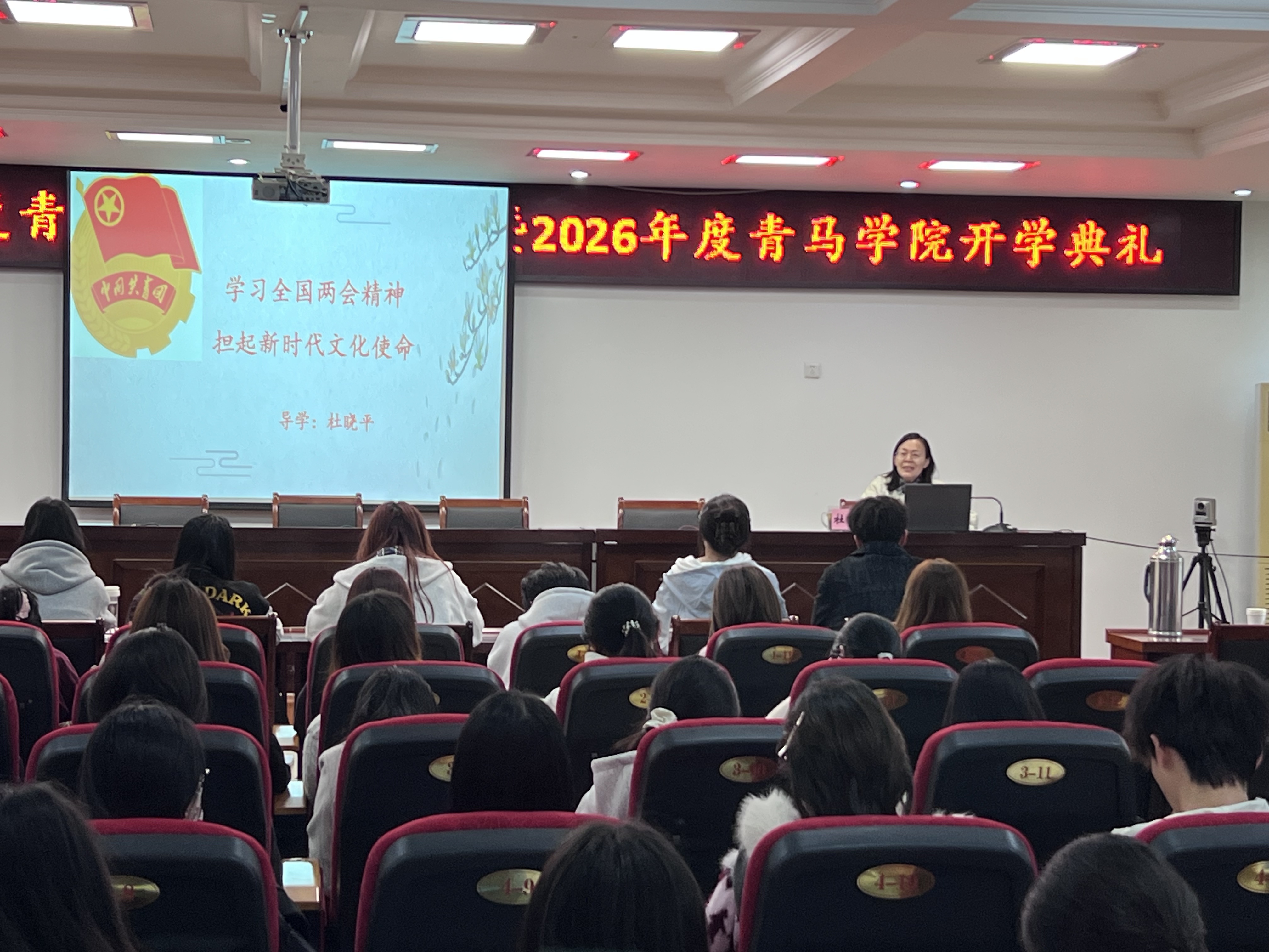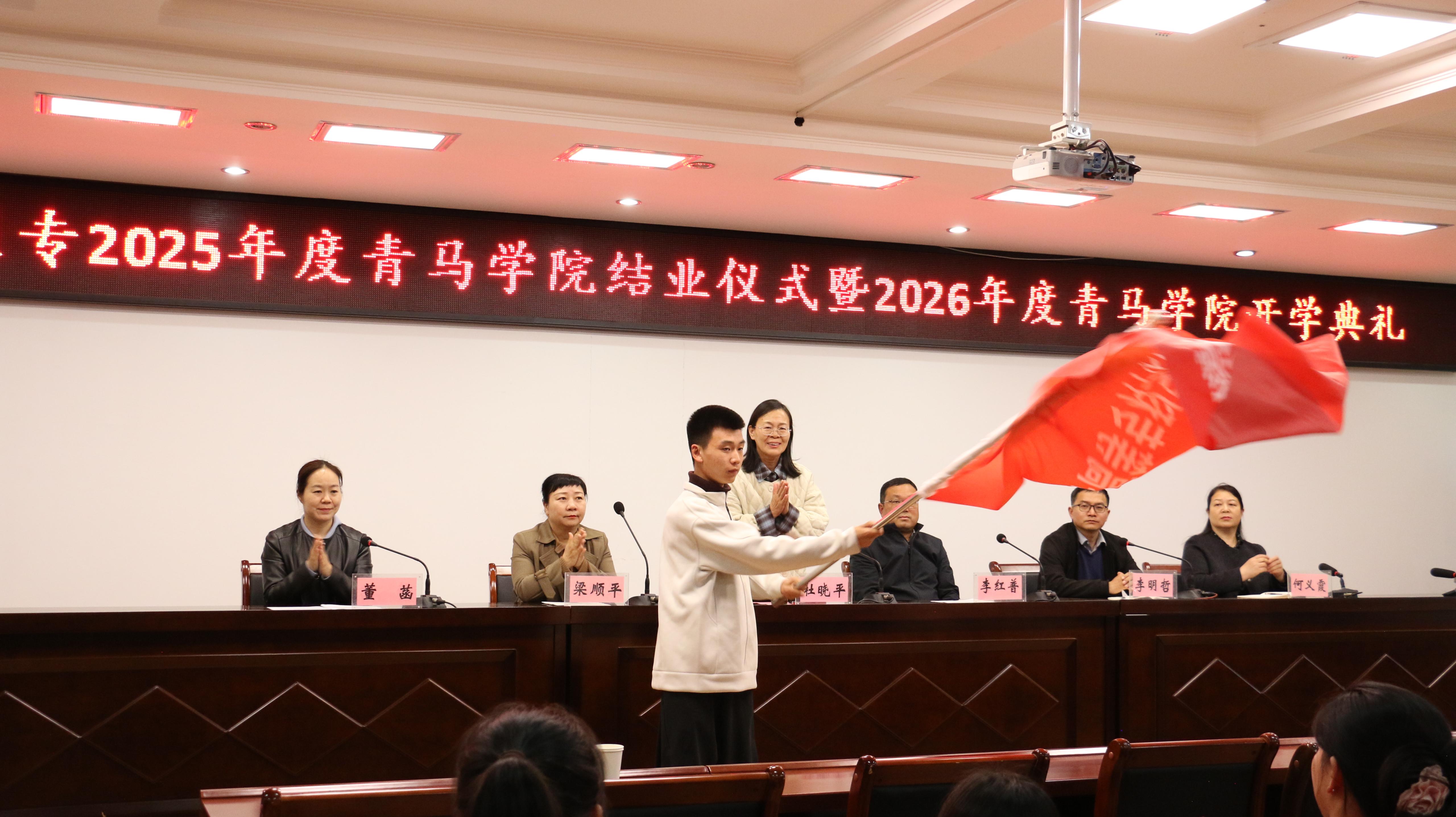 杜晓平为2026年度青马学院授旗,组织部部长李红普、学工部长、学生处长梁顺平分别传达《关于南阳医专2025年度青马学院结业的通知》《关于举办南阳医专2026年度青马学院的通知》。与会领导为学员代表、优秀学员颁发证书。青马学员代表发言。
