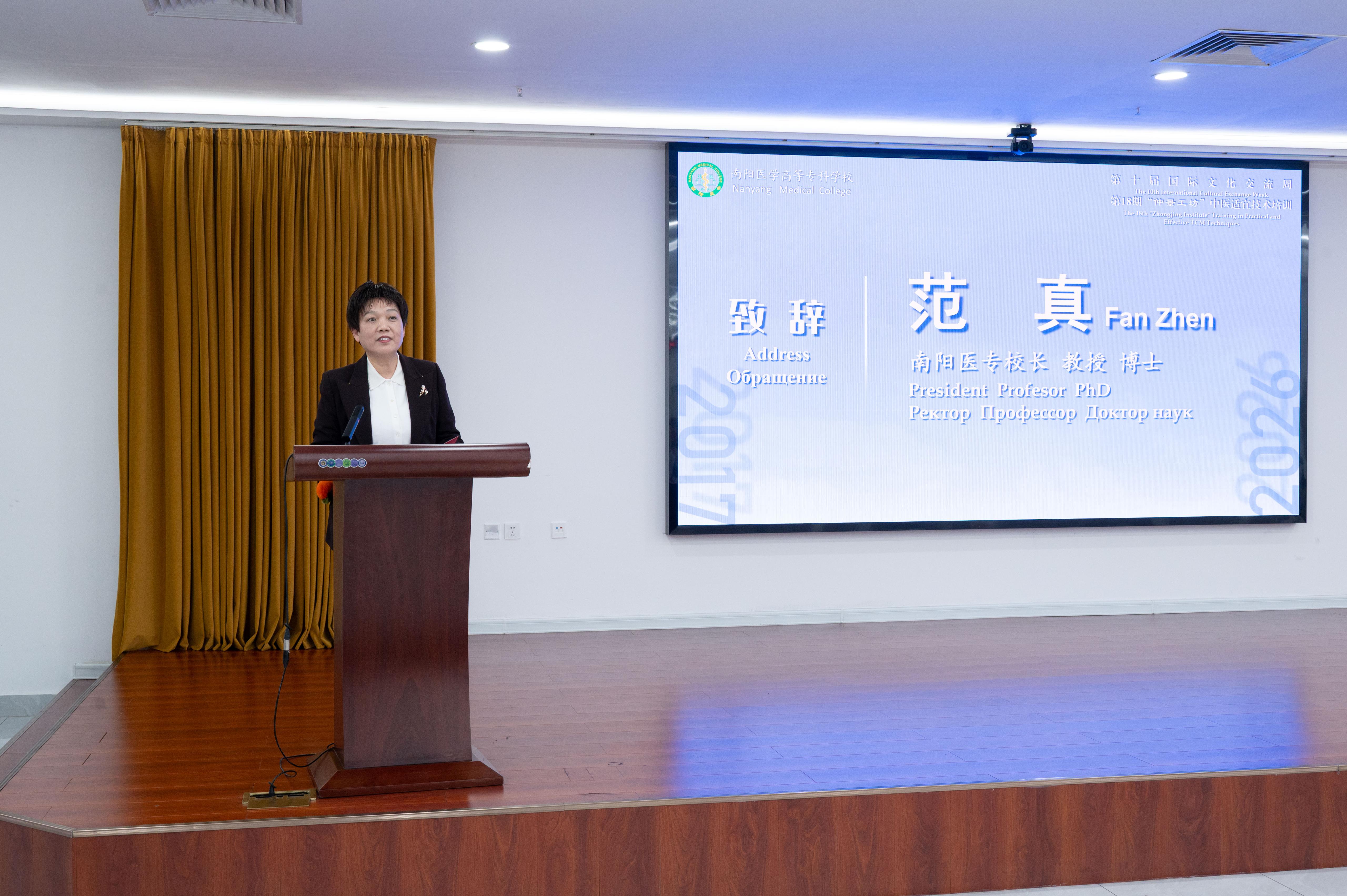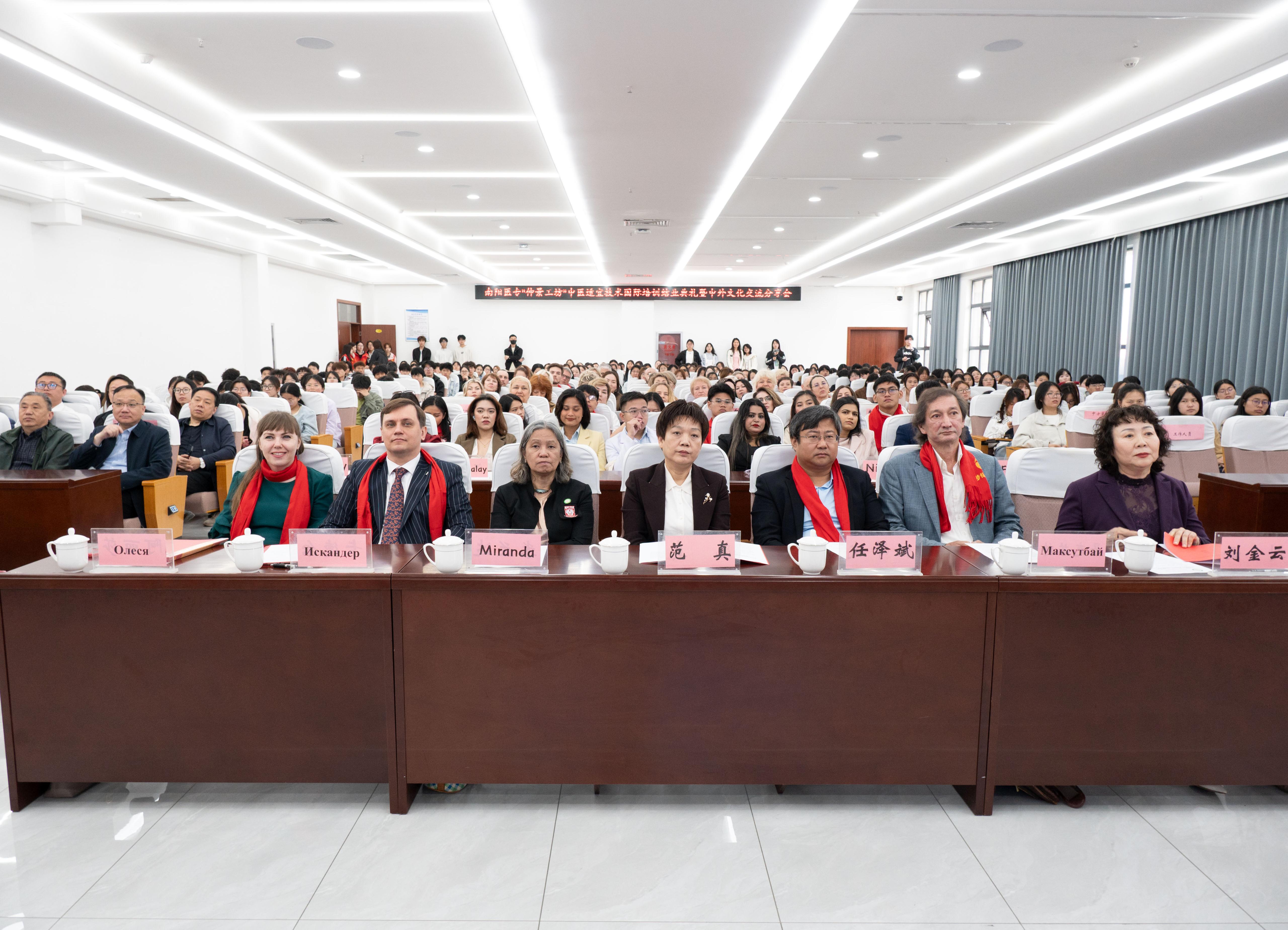 本网讯(文/对外合作交流处 周国军 张瑶)4月24日,南阳医专第18期“仲景工坊”中医适宜技术国际培训结业仪式暨中外文化交流分享会在仲景文化中心顺利举行。校长范真出席活动并讲话,来自俄罗斯、菲律宾、马来西亚的国际学员、培训班授课教师、师生代表及相关部门负责人参加。仪式由校纪委书记刘金云主持。