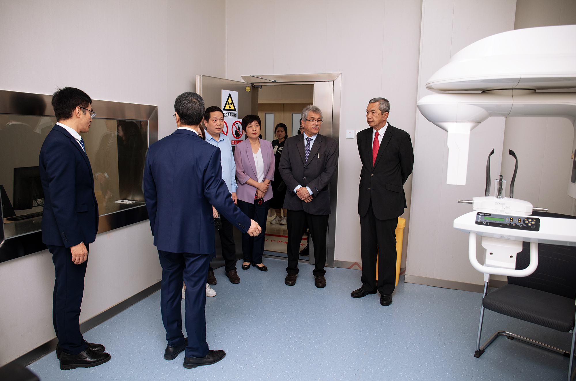 在校领导陪同下,来访团实地考察我校人体生命科学馆、中医药科技馆、非遗传承中心、口腔医学系、康复医学系、一附院、二附院和南阳市口腔医院等教育教学医疗设施。