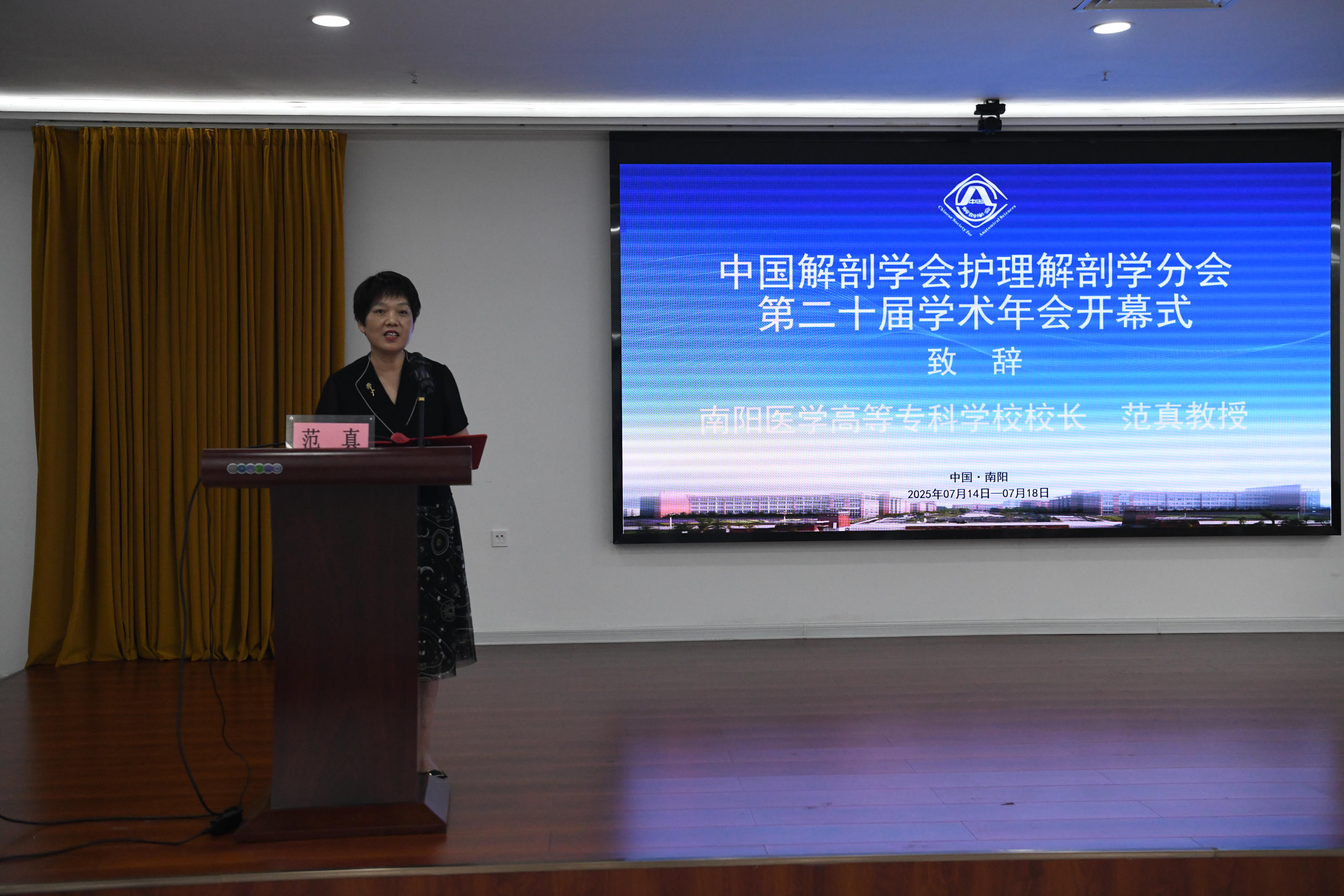 开幕式上,中国工程院院士钟世镇教授发来视频贺词,对分会30年来的发展给予高度评价,并寄语未来。南阳医专校长范真、中国解剖学会副理事长易西南教授、护理解剖学分会主任委员丁自海教授等出席开幕式并致辞。范真对各位嘉宾的到来表示热烈欢迎,她指出,中国解剖学会护理解剖学分会成立30周年,学术年会走过20届历程,每一届都凝聚着学界同仁的智慧与汗水,见证了护理解剖学在理论创新、技术应用、人才培养等方面的进步。她强调,学校将以此作为传承仲景精神、深化护理解剖教学改革的新起点;期待与全国专家携手,把会议成果转化为育人实效,培养更多“下得去、用得上、留得住、干得好”的高素质医学人才。