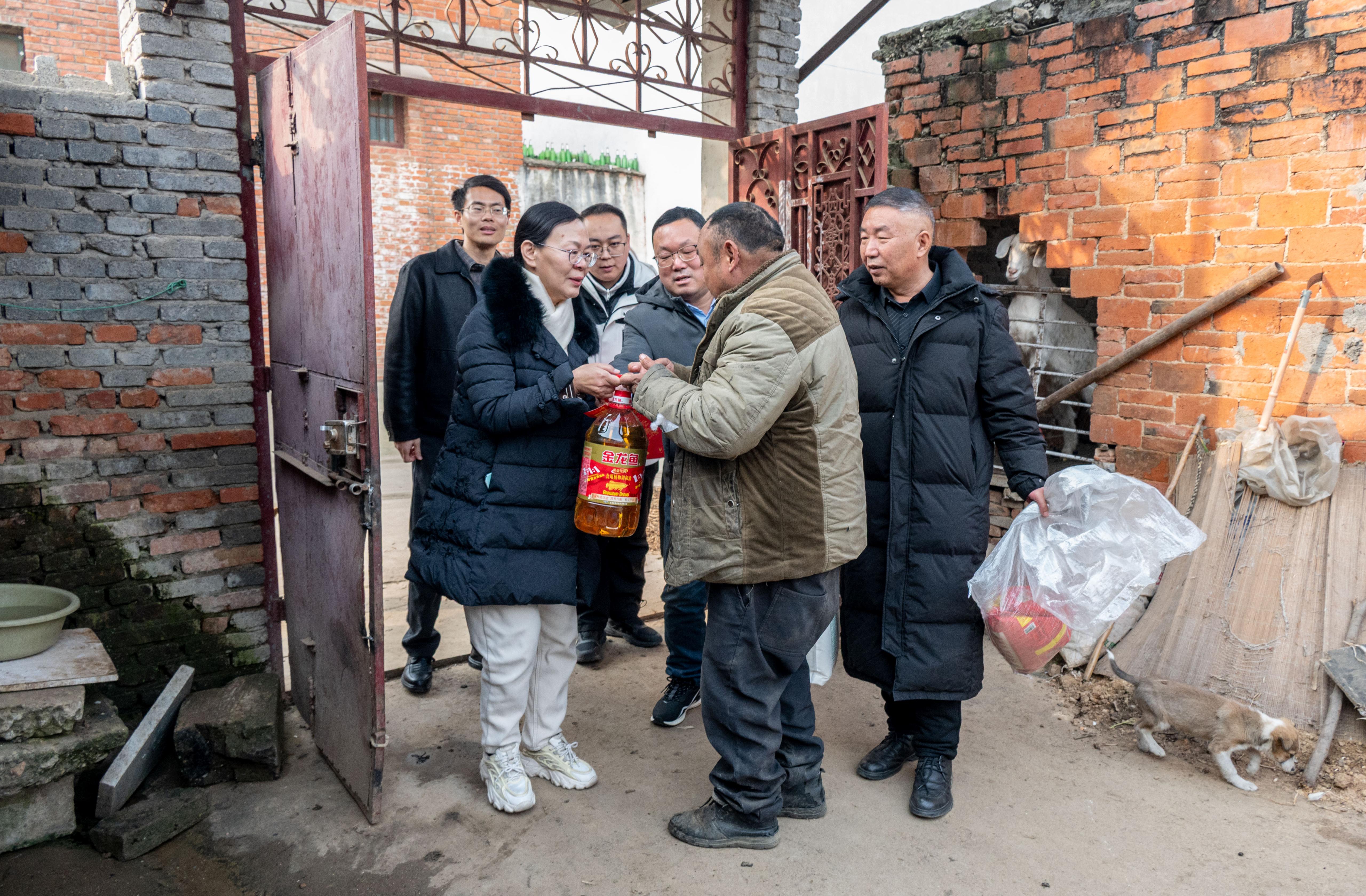 杜晓平一行深入贫困群众家中,与他们亲切交谈,详细询问家庭生活状况、身体情况及当前存在的困难,认真倾听群众的诉求与期望。随后,杜晓平为贫困群众送上了米面油蛋等生活物资,将学校的关怀与温暖精准送达帮扶对象手中,鼓励他们保持乐观心态,积极面对生活。