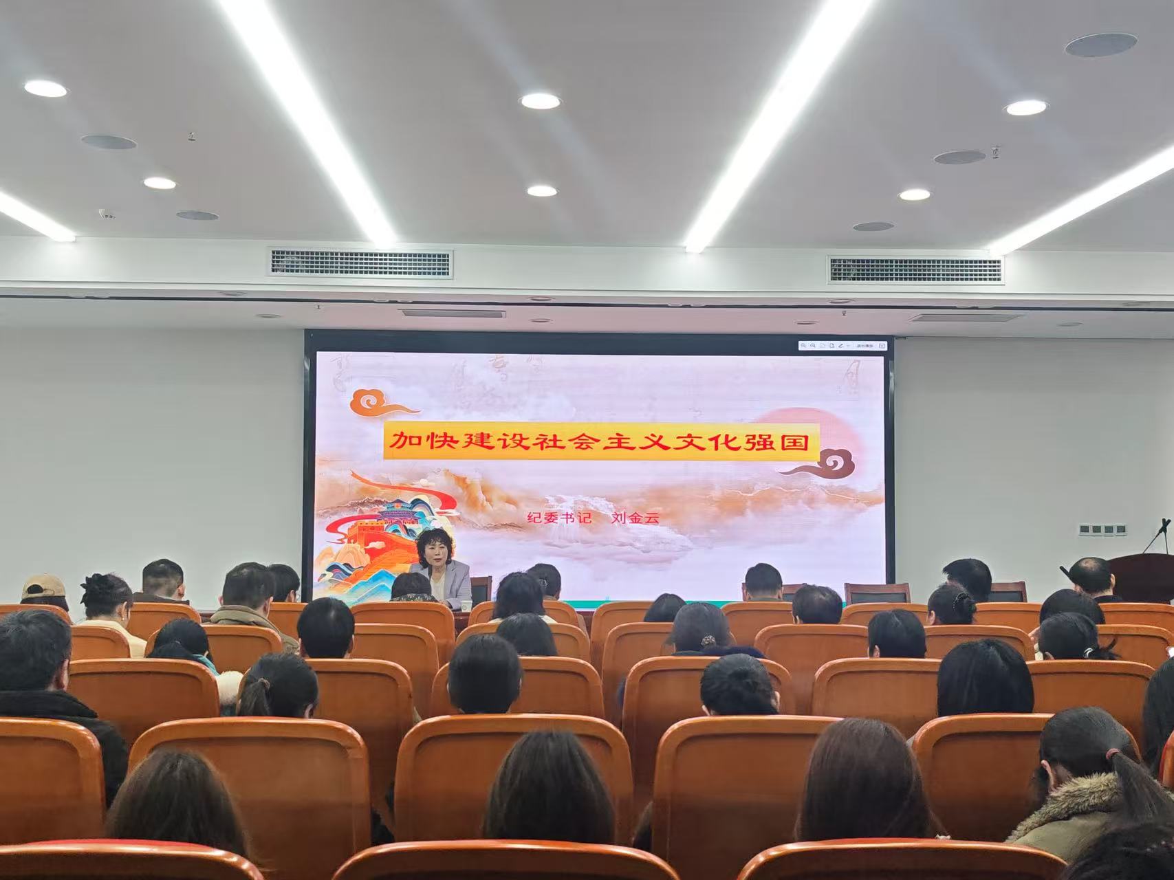 本网讯(文/纪委 龚如东)1月7日,校党委委员、纪委书记刘金云以“加快建设社会主义文化强国”为题,面向国际教育学院、康复医学系师生及机关二支部党员讲授思政课。