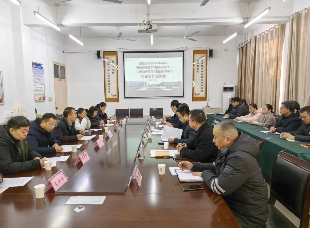 本网讯(文/医学技术系 黄燕燕)1月22日,我校召开眼视光技术专业校企合作洽谈会。副校长刘荣志、二附院院长时沛、天津郎书数字科技有限公司总经理李腾威,广东逸仙医疗技术服务有限公司总经理马露出席,学校相关部门负责同志参加。会议由副校长王岩主持。