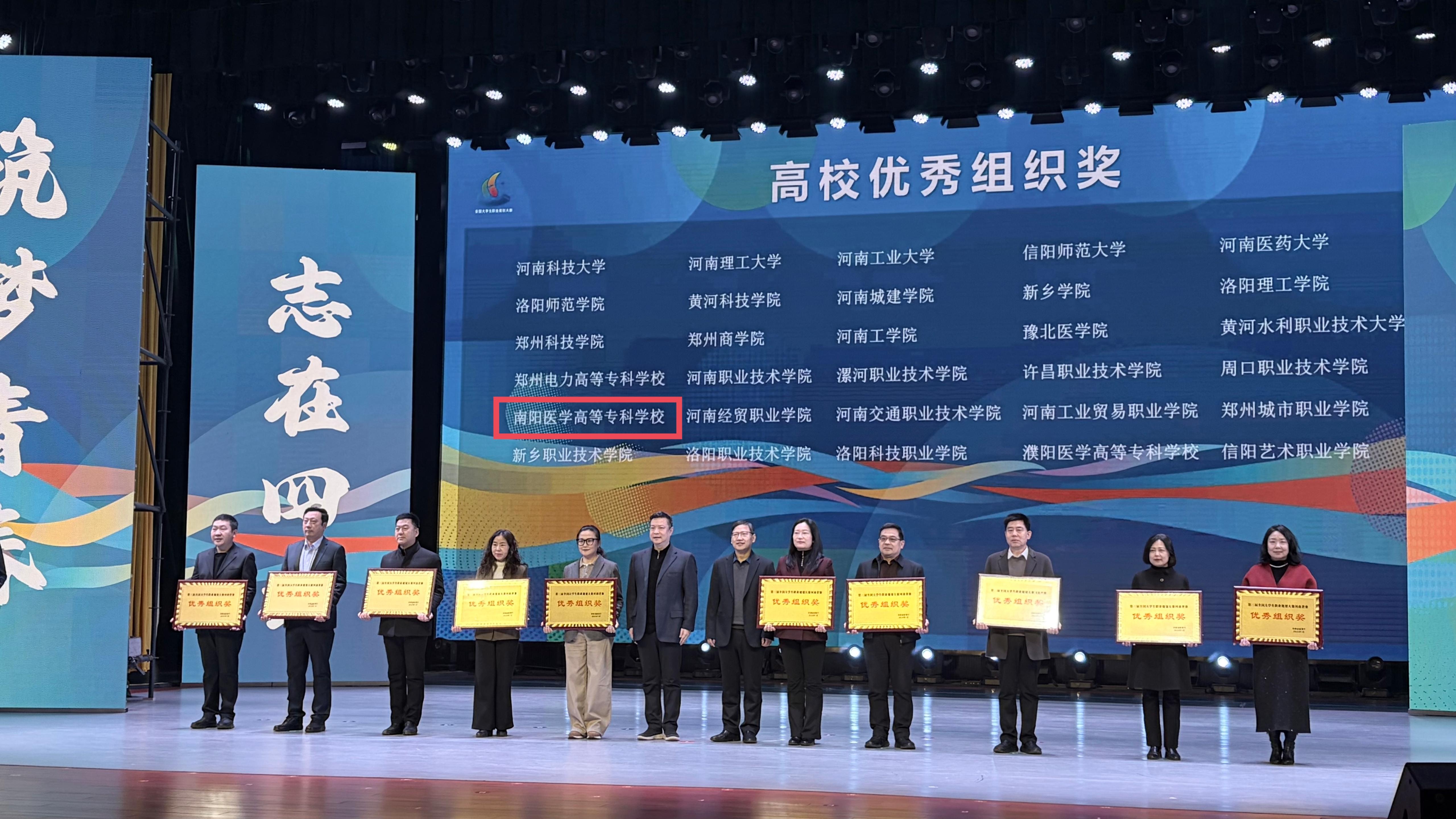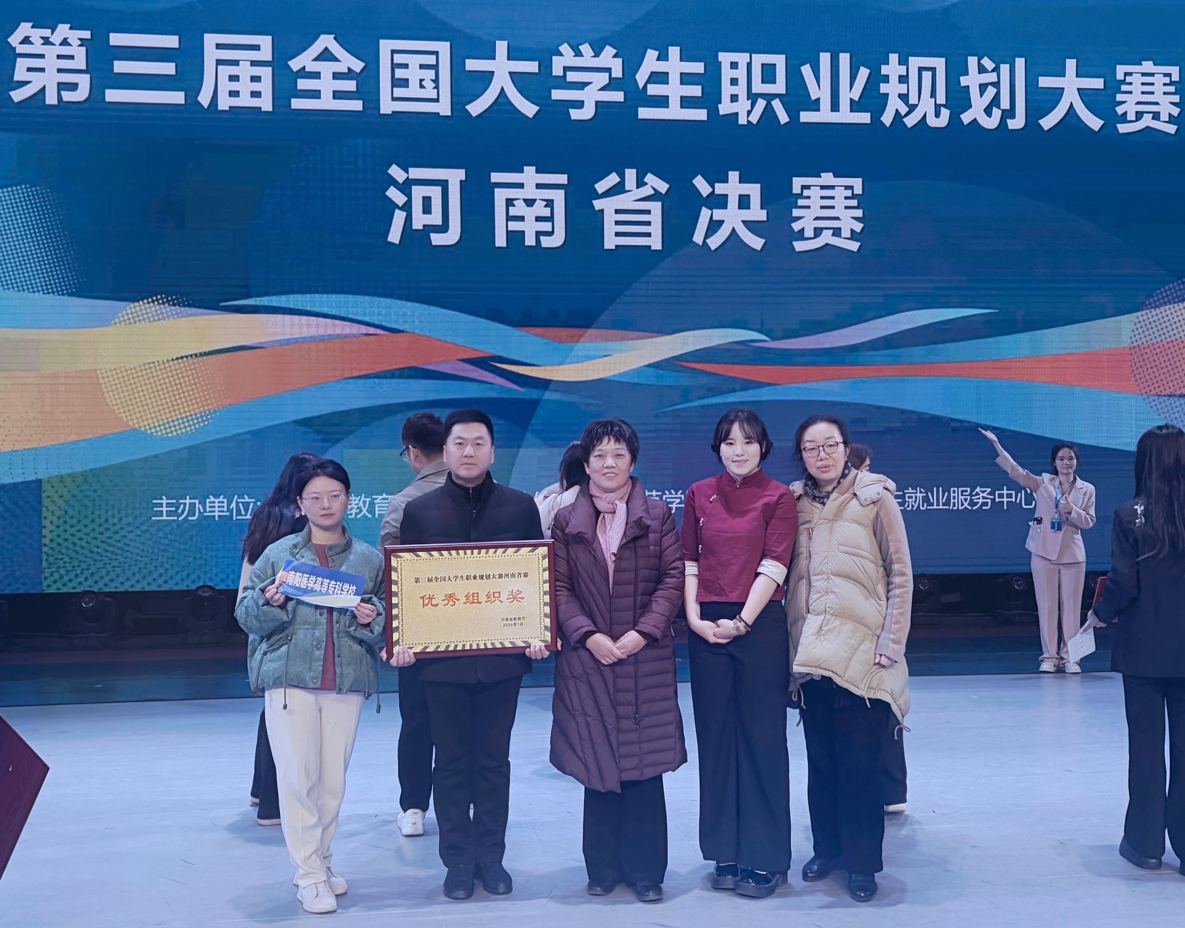 本网讯(文/就业创业处 姚宛龙)1月26日,由河南省教育厅主办的第三届全国大学生职业规划大赛河南省赛(职教组)在新乡举行。我校选派的药学系、中医系、临床医学系、针灸骨伤系和医学技术系7名选手全部获奖,其中金奖2项、银奖3项、铜奖2项,学校获“优秀组织奖”,获奖数量与质量均位居全省高职院校前列。