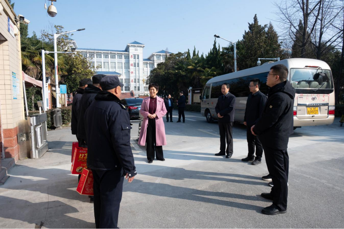 在仲景西区、仲景东区,校领导一行实地查看校园安全防控、后勤服务保障等工作落实情况,与一线教职工亲切交谈,详细询问值班安排、工作状态和生活情况。范真指出,寒假及春节期间校园安全与后勤保障至关重要,要强化责任意识,常态化排查安全隐患,完善应急机制,确保校园安全稳定。她强调,过去一年一线教职工默默奉献,为学校高质量发展提供了坚实保障,代表学校党委向大家致谢,并送上新春祝福。受慰问教职工深受鼓舞,表示将坚守岗位、不负嘱托,做好服务保障工作。
