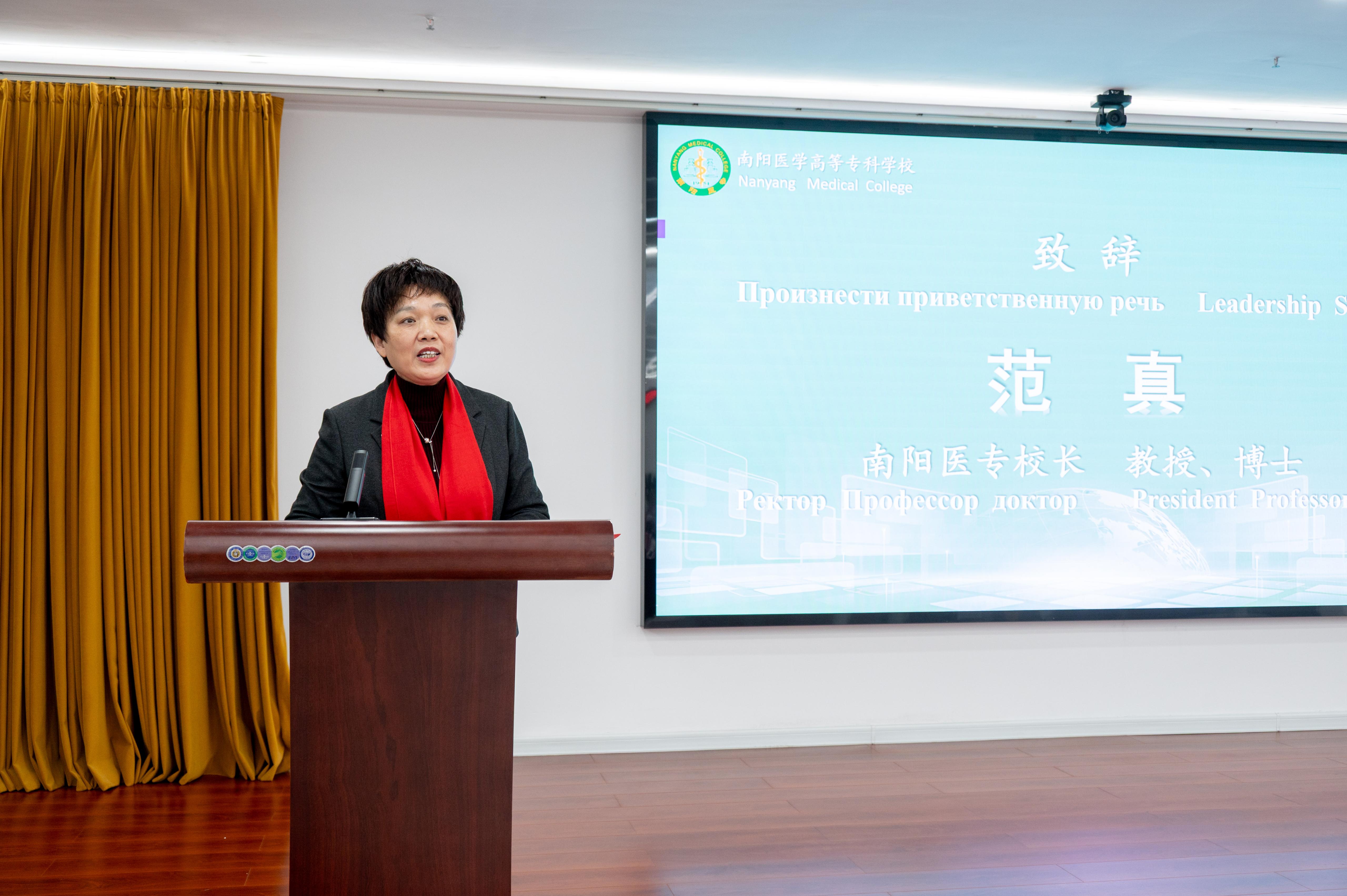 校长范真致辞,她指出,本次培训结合学员需求优化课程体系、强化实操教学,将中医理论与临床实践深度融合,助力学员精准把握技术精髓。她希望,学员成为中医技艺的传承者和中俄中医药交流的传播者,让中医药瑰宝跨越山海、惠及世界。