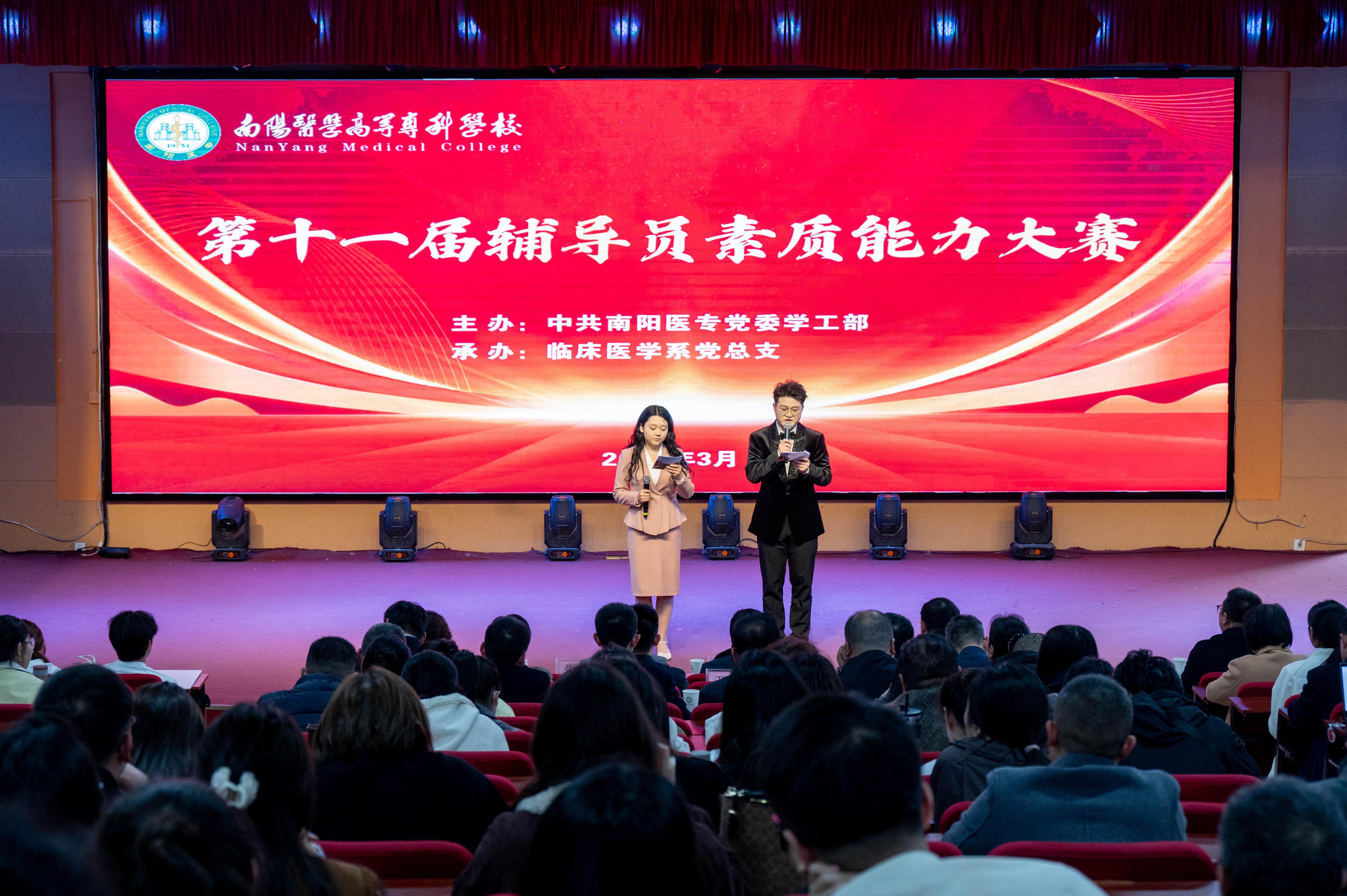 本网讯(文/学生处 皇甫乐观)3月25日下午,由校党委学工部主办,临床医学系党总支承办,我校第十一届辅导员素质能力大赛在仲景东区礼堂顺利举办。校党委委员、副校长王岩出席并致辞,学校相关部门负责同志担任评委,各系(部、院)书记、全体辅导员及学生代表参加。
