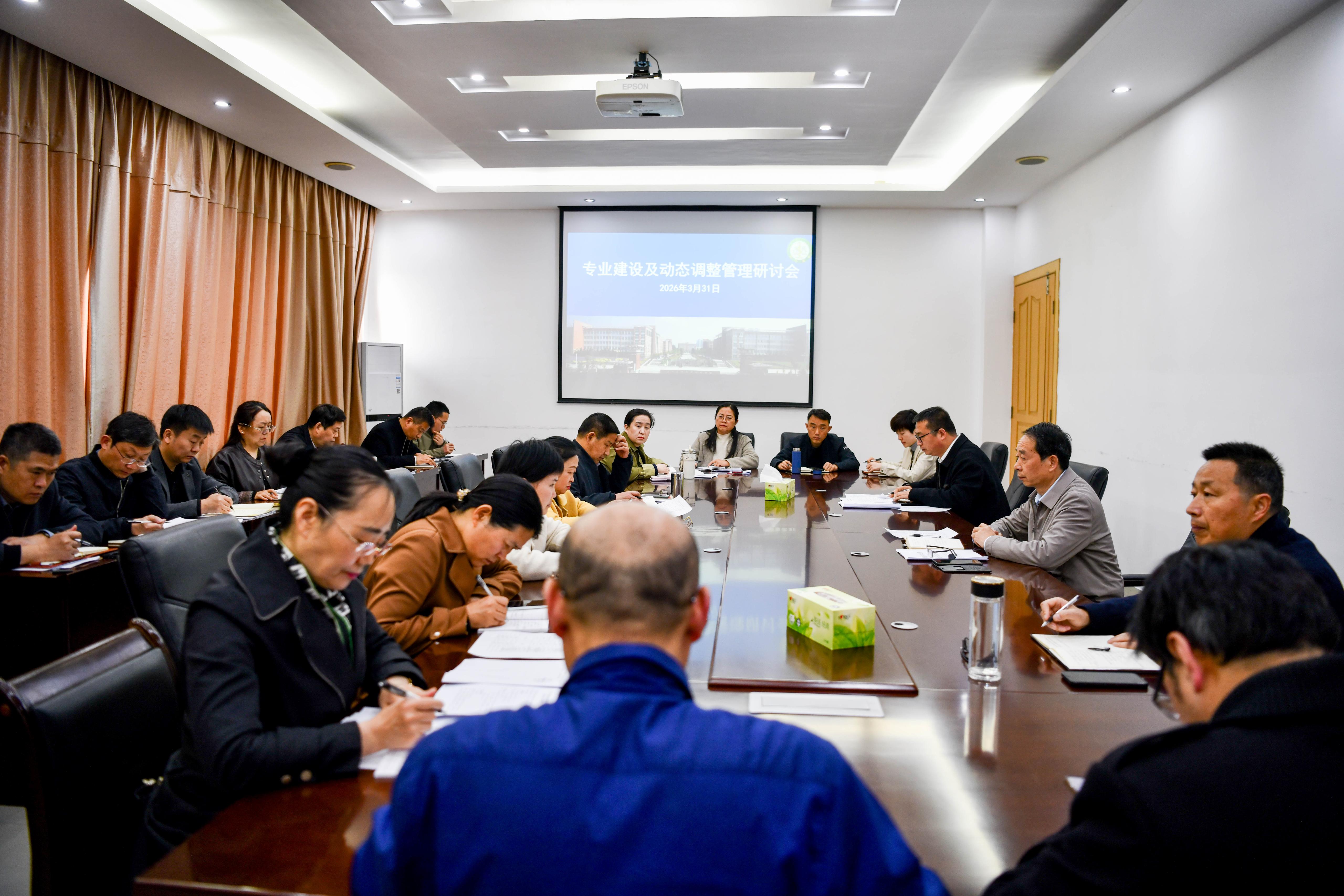 本网讯(文/教务处 樊冰)3月31日上午,我校专业建设及动态调整管理研讨会在行政楼3楼2号会议室召开。校党委委员、副校长刘荣志出席,校专业群、各专业建设委员会及相关部门负责人参加。会议由教务处处长李明哲主持。