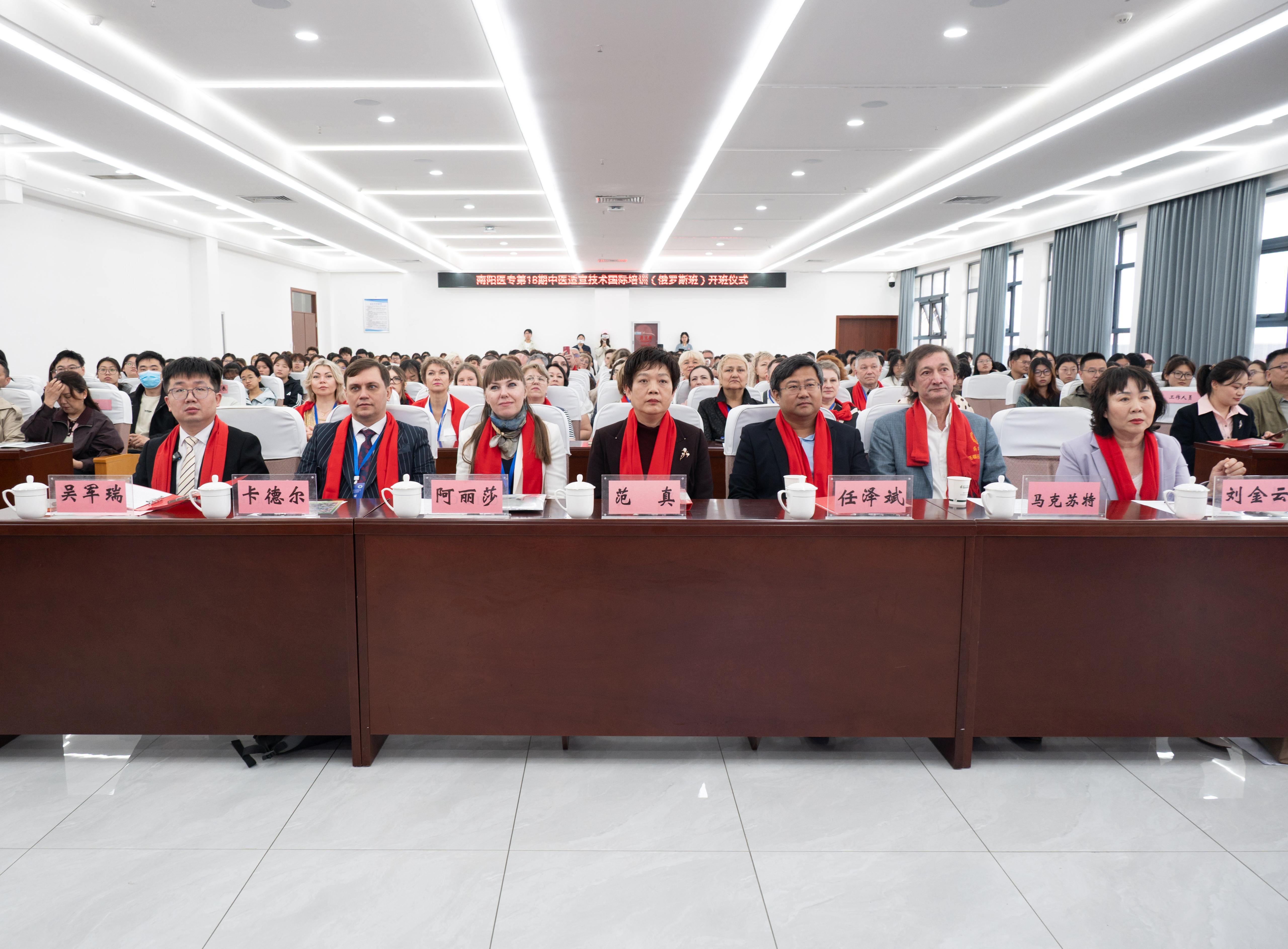 本网讯(文/对外合作交流处 夏灵果)4月13日上午,我校第18期“仲景工坊”中医适宜技术国际培训开班,来自俄罗斯的60余名学员们齐聚医圣故里,共赴一场跨越山海的中医文化之约。校长范真、俄罗斯中医药学会会长任泽斌出席开班仪式并致辞。仪式由纪委书记刘金云主持。