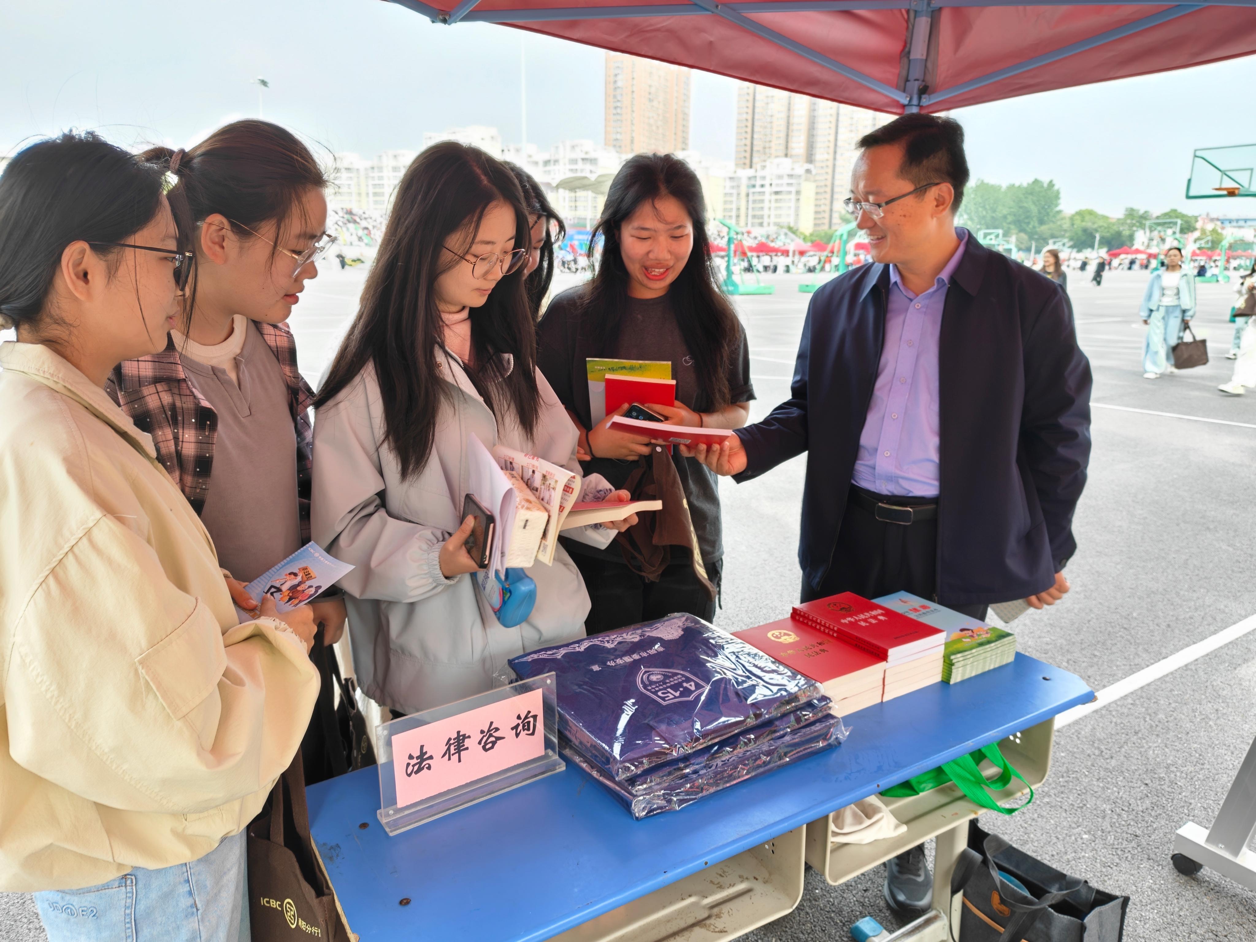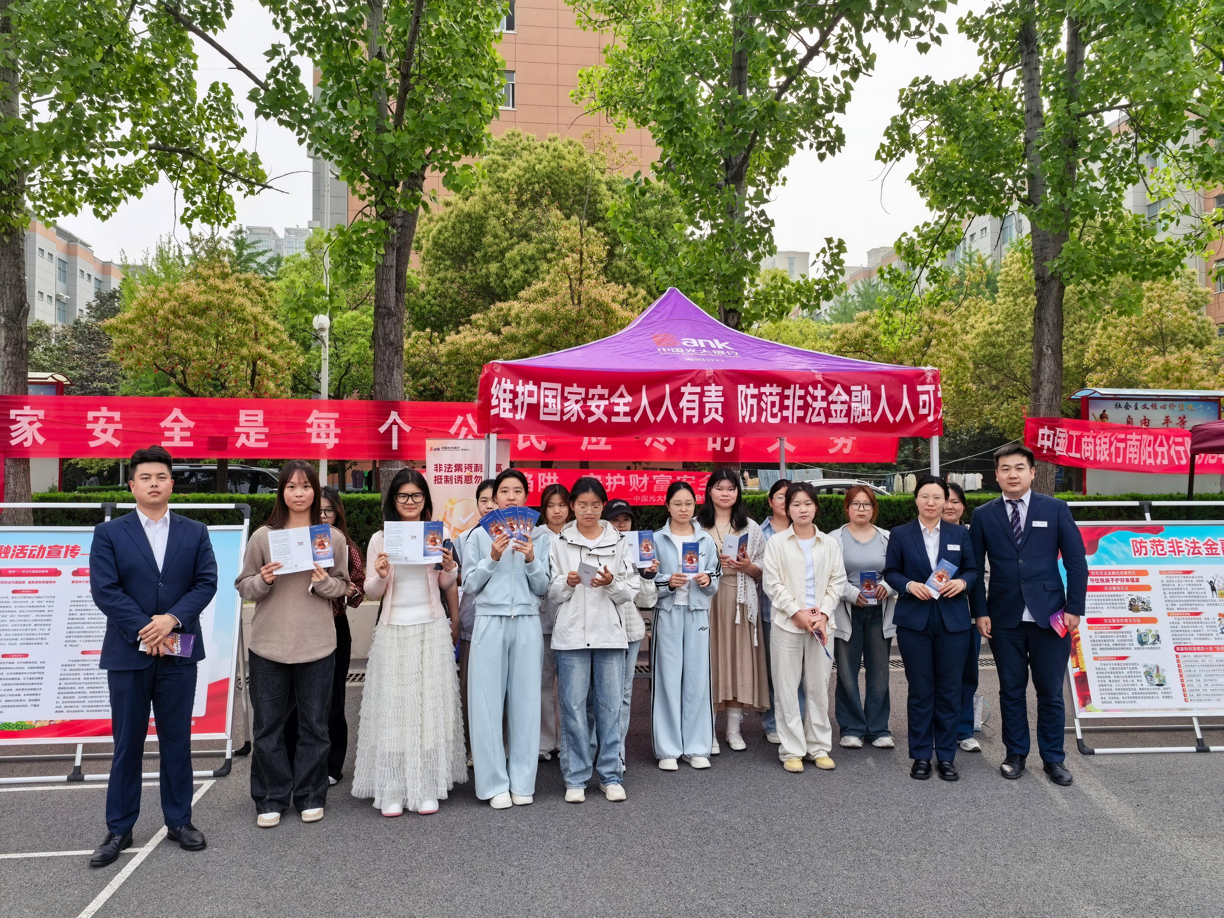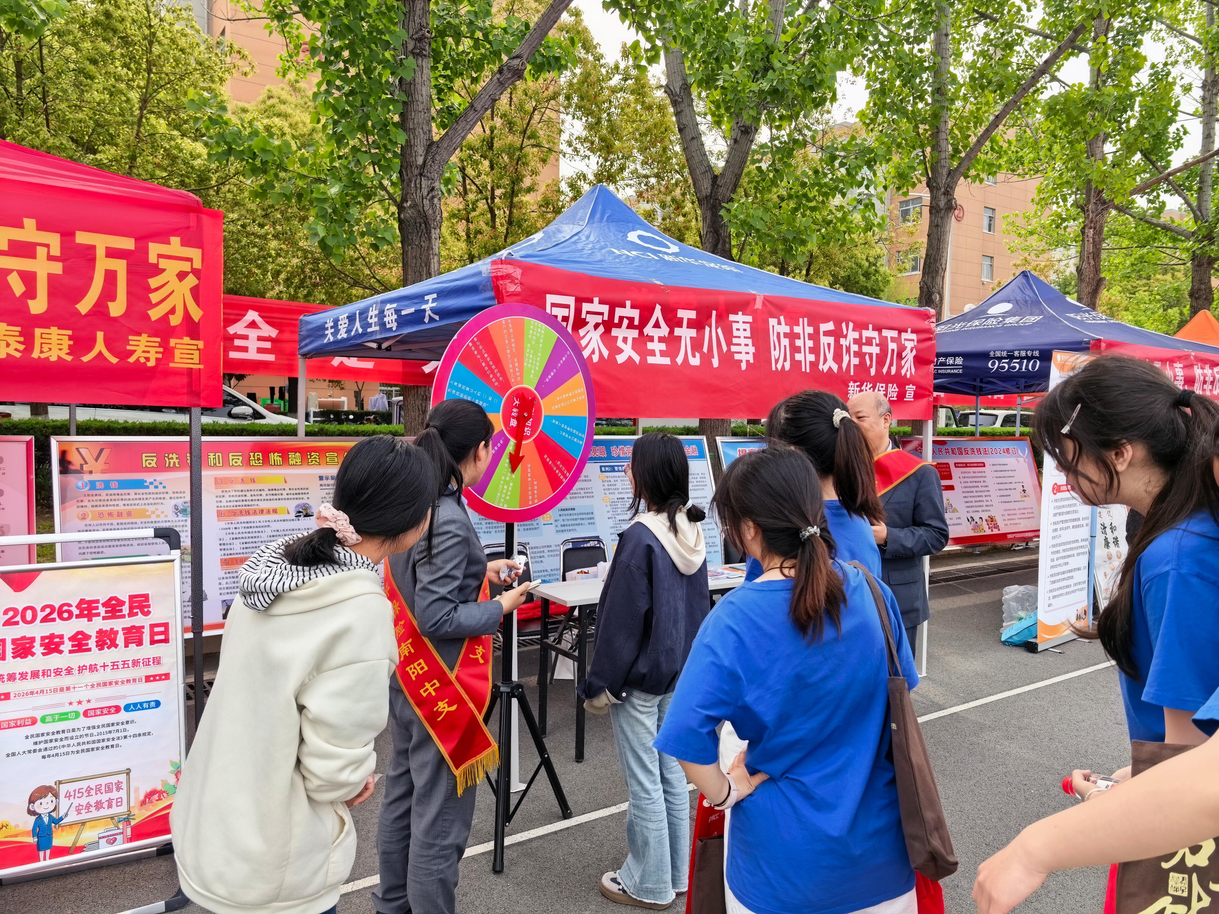 本网讯(文/法制办 李童)4月15日上午,在第11个全民国家安全教育日来临之际。我校围绕“统筹发展和安全·护航‘十五五’新征程”主题,开展国家安全宣传教育系列活动,引导广大师生树牢“国家安全、人人有责”意识,自觉成为国家安全的守护者、践行者。市政府副秘书长王星建、校长范真、校党委副书记刘涛出席活动,中国人民银行南阳市中心支行、国家金融监管总局南阳分局、南阳市处非办、南阳市银行业协会及20家银行、证券、保险机构协同参与。